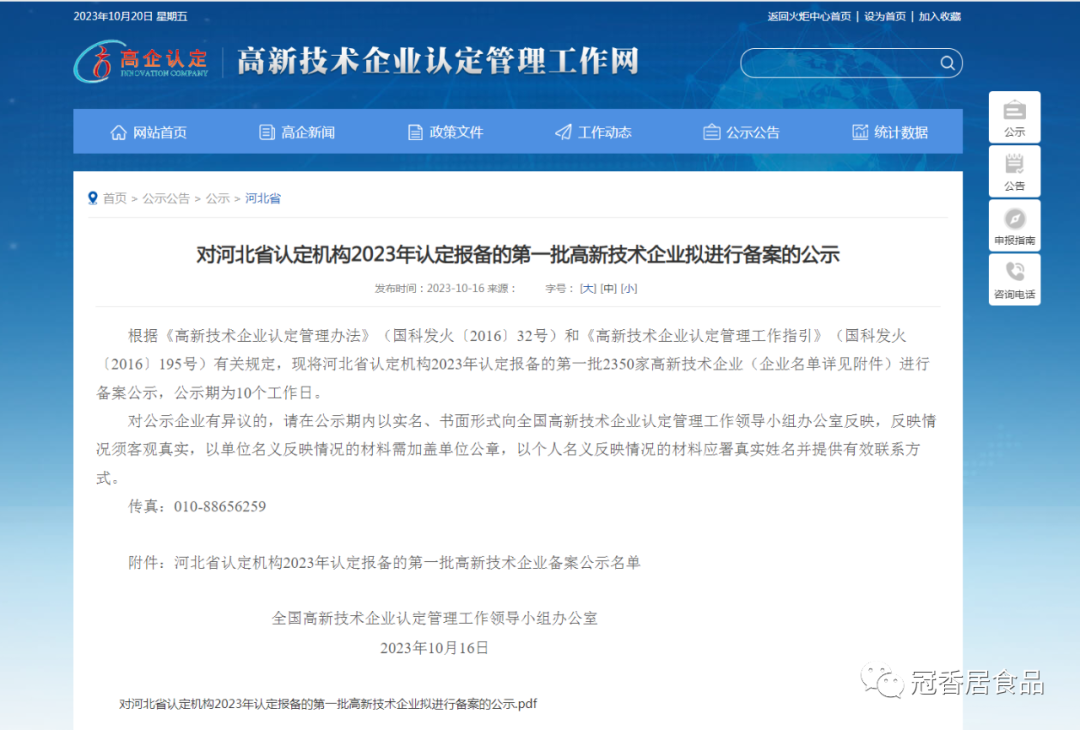 冠香居公司被認(rèn)定為高新技術(shù)企業(yè)